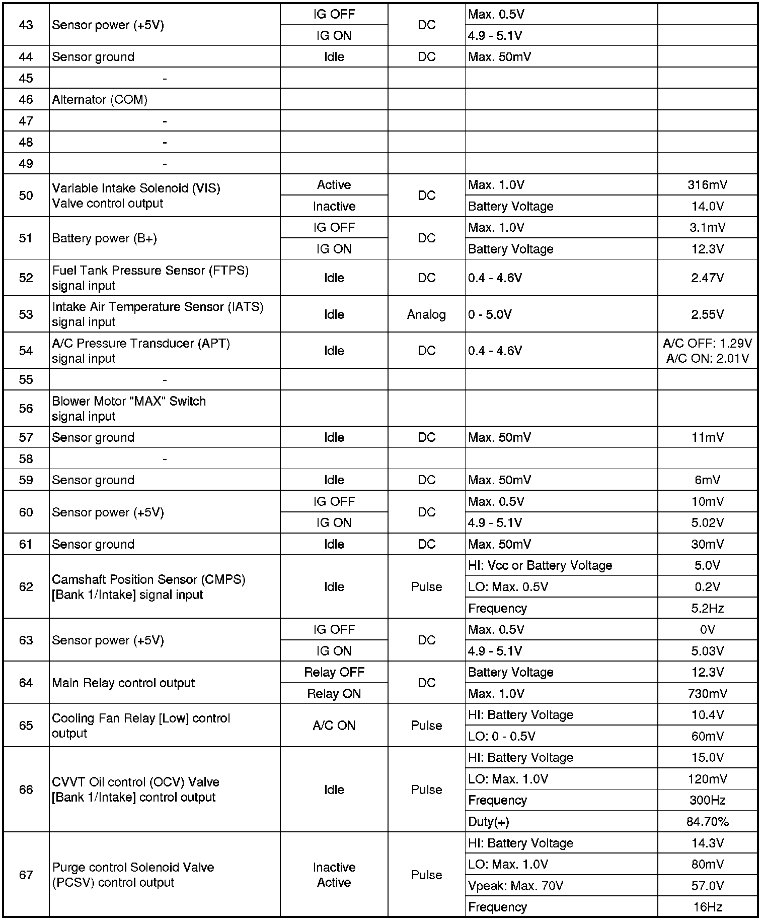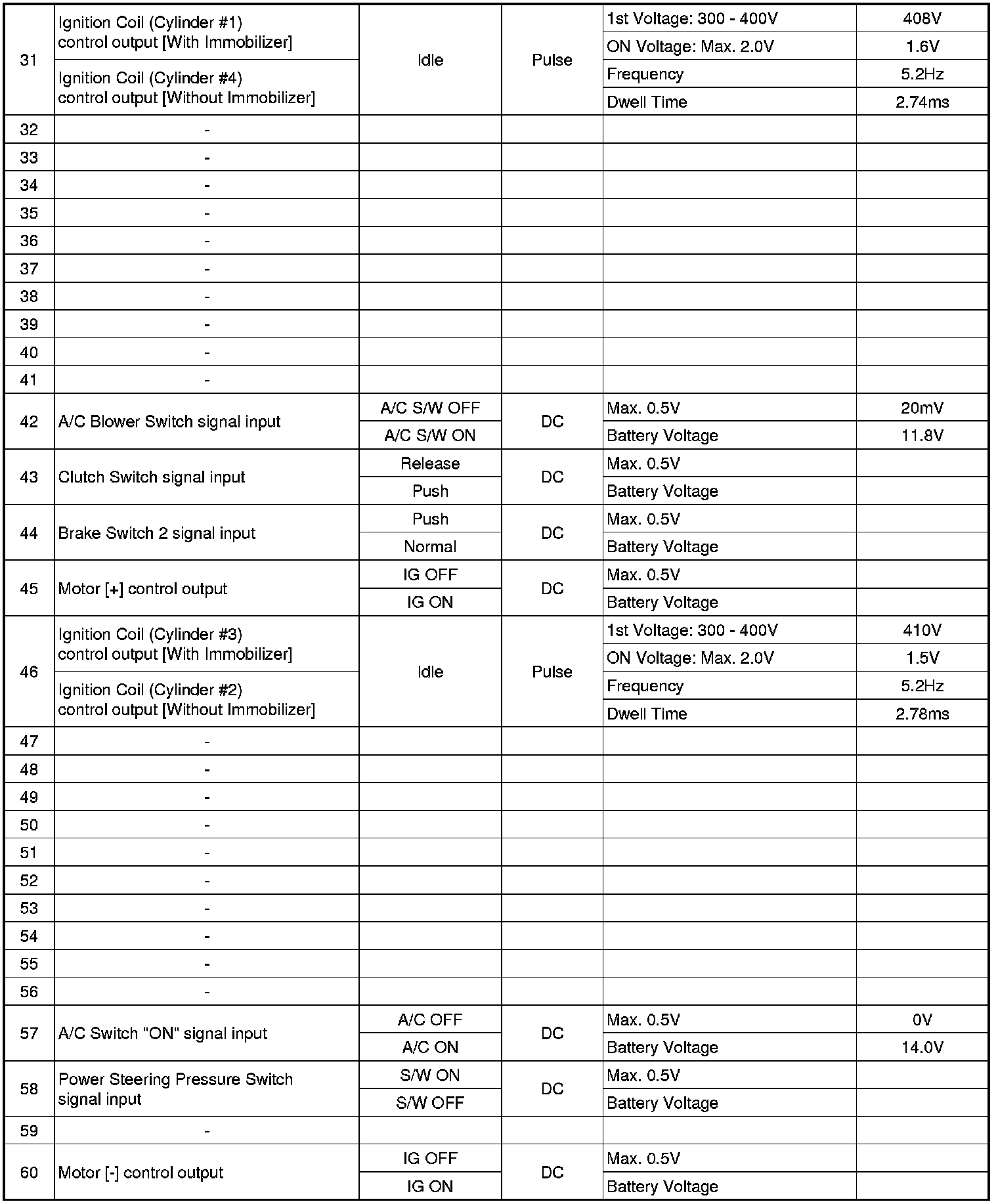 ECM Terminal And Input/Output signal