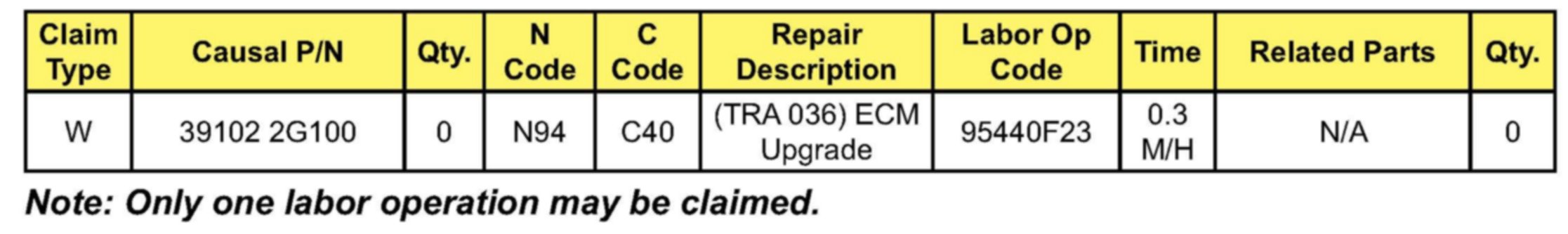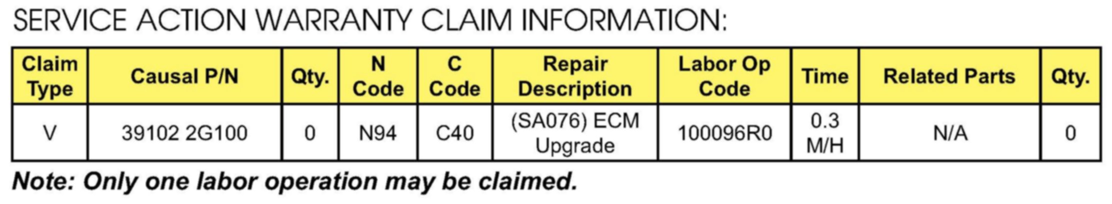 Home >> Kia >> 2010 >> Forte L4-2.0L >> Repair and Diagnosis >> Transmission and Drivetrain >> Automatic Transmission/Transaxle >> Control Module >> Technical Service Bulletins >> Recalls >> Campaign SA076 - TCM Update For TCC Logic