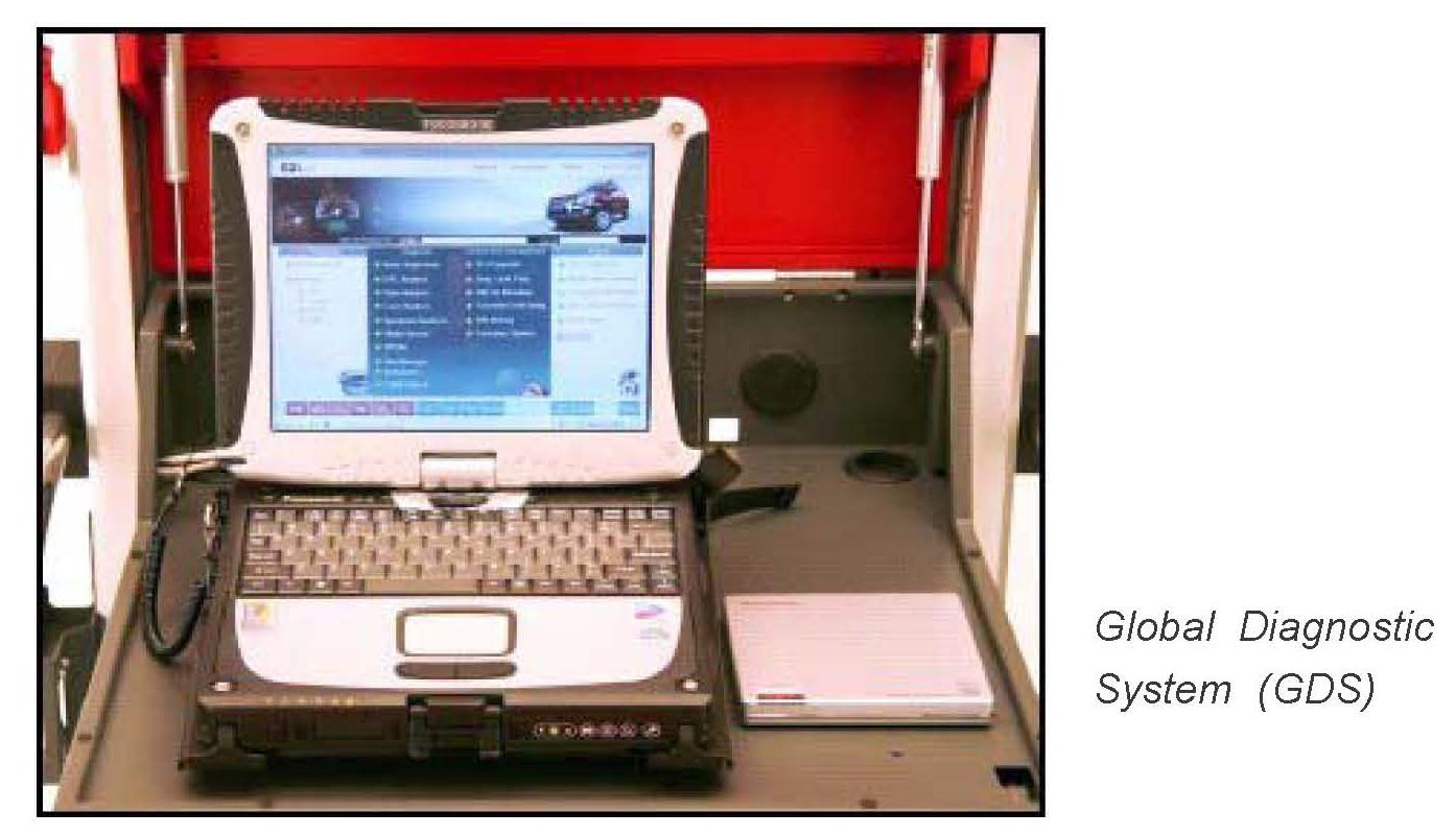 1. Using the 16-pin DLC cable from the GDS while still hooked to the OBD-II connector, located under the driver's side area of the instrument panel.