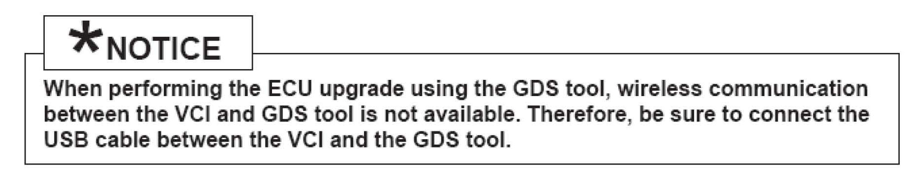 5. With the ignition key ON, turn ON the VCI and GDS tool. Access the GDS vehicle identification number (VIN) screen and configure the vehicle using the VIN AUTO DETECT Function.