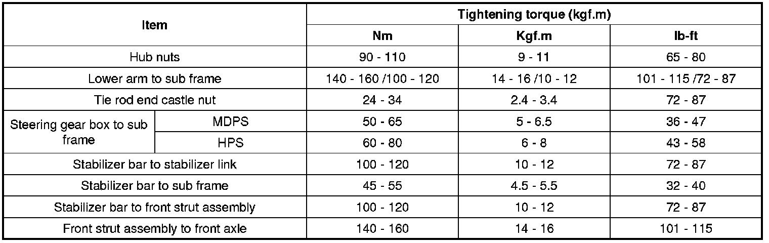 Tightening Torques
