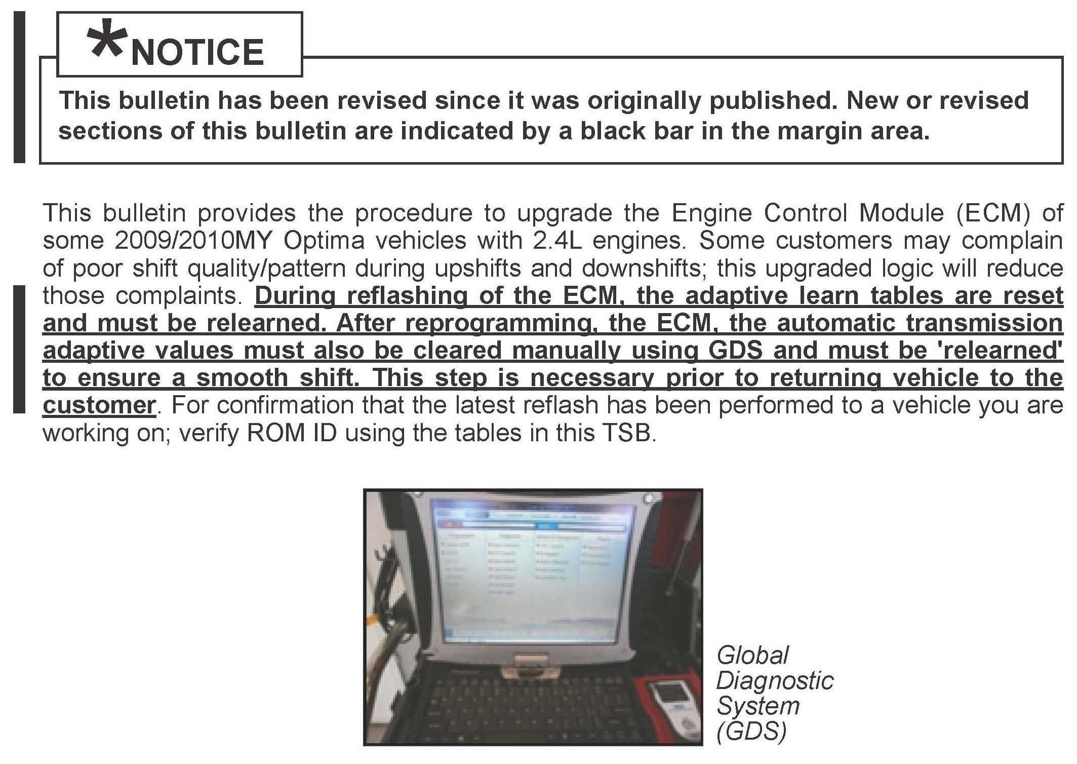 To correct this condition the ECM should be reprogrammed using the GDS download as described in this bulletin.