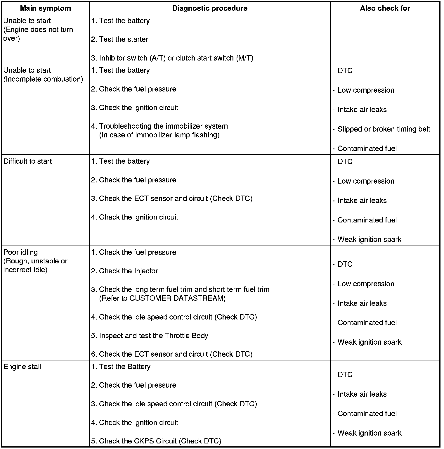Symptom Troubleshooting Guide Chart