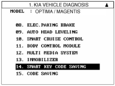 2. Select the vehicle model and then do "Smart key code saving".