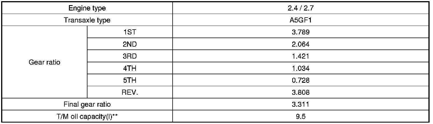 ** The quantity in the chart above is for the reference. The actual filling quantity of the automatic transaxle fluid must be set according to 'INSPECTION' or 'REPLACEMENT' procedure of the automatic transaxle fluid.