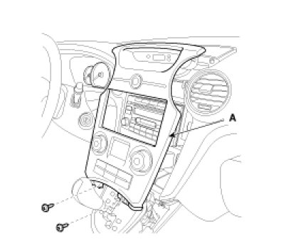 2. After loosening the mounting screw, then remove the center facia panel (A).