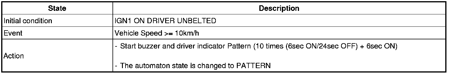 (1) When IGN1 ON & S/BELT is not wearing, WARNING INDICATOR is blinking as cycle of 0.6s and BUZZER is outputting as cycle of 1s for 6s.