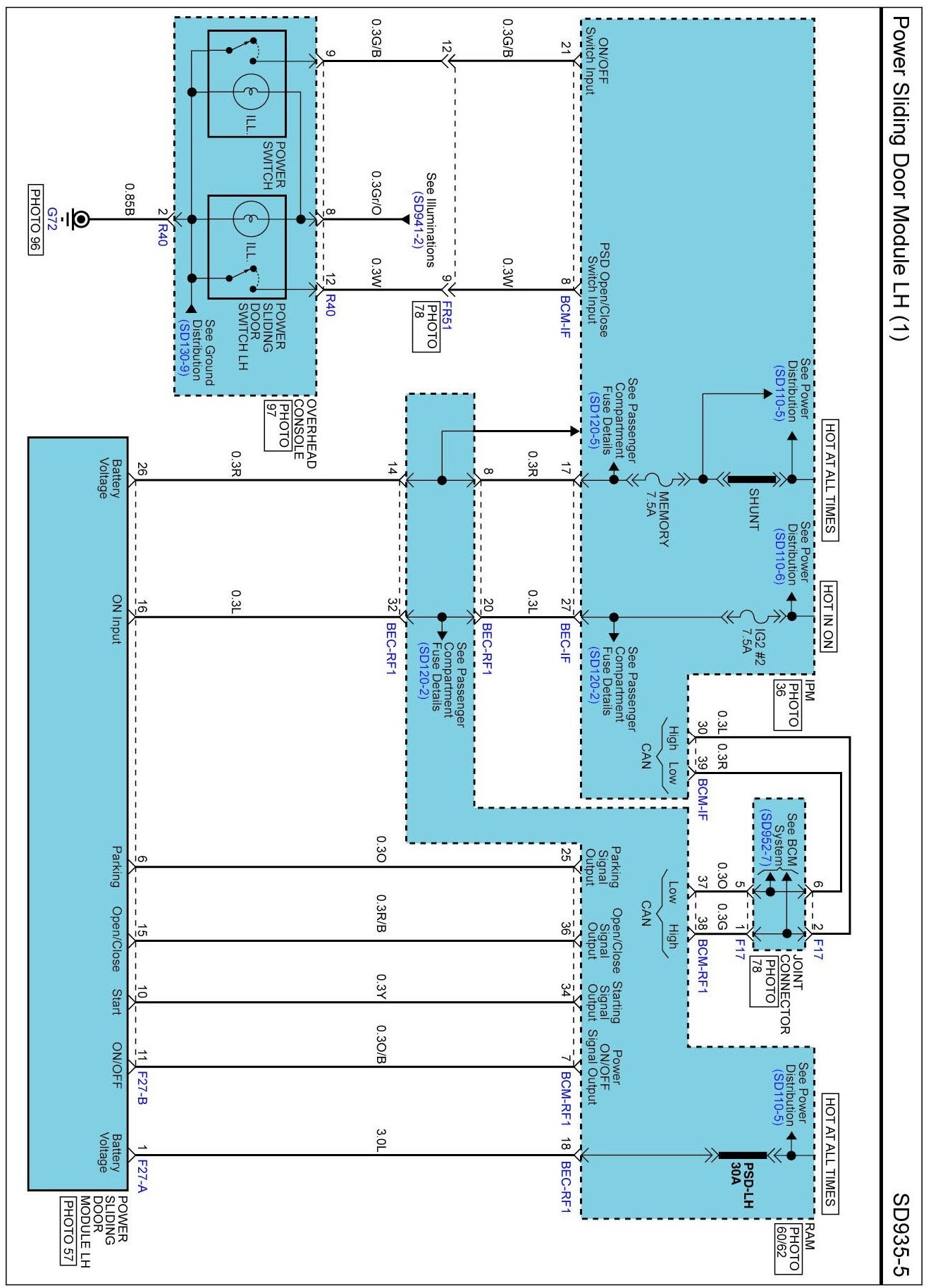 Power Sliding Door Module LH (3) Connector Pin Outs: