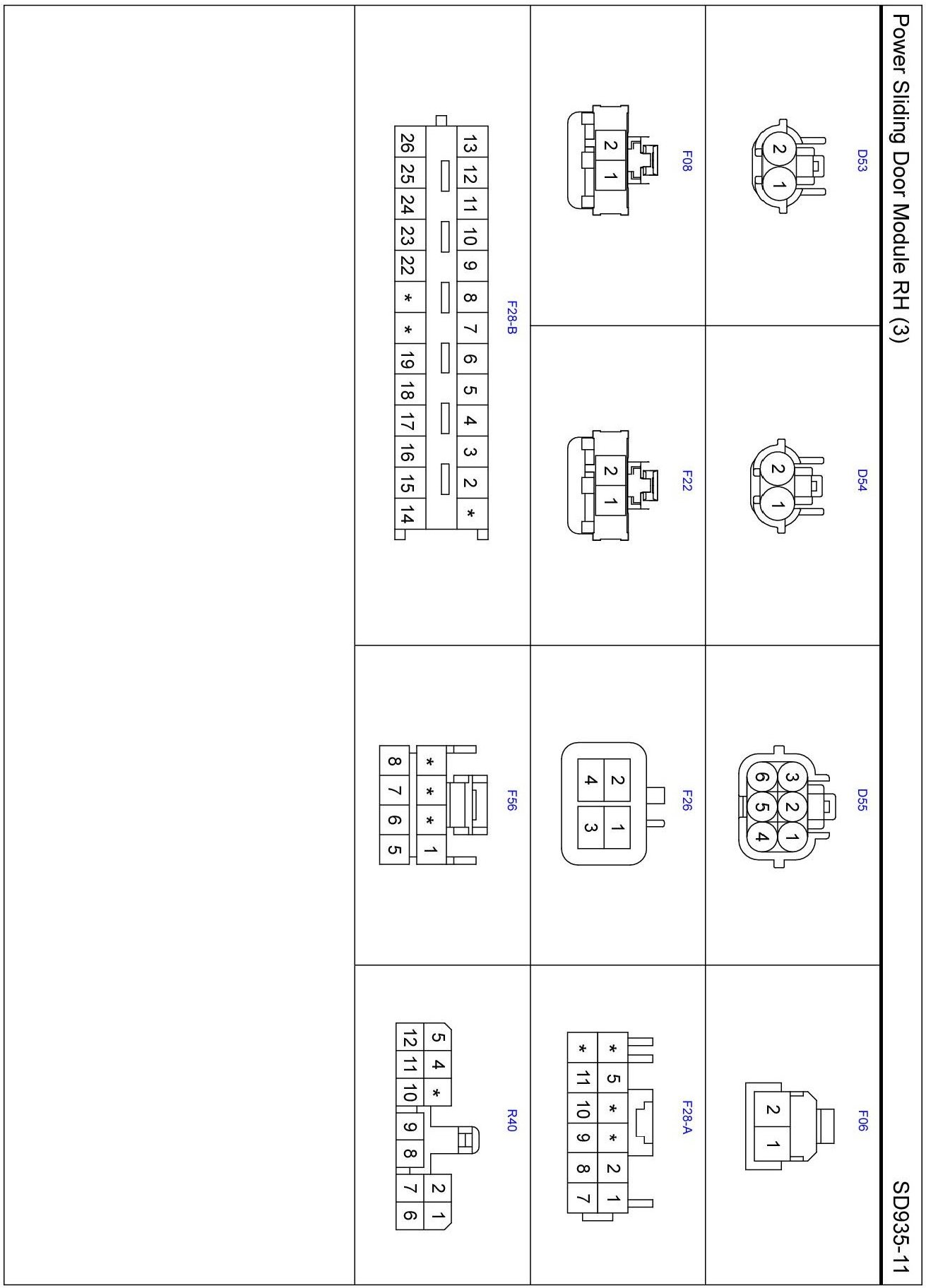 Power Sliding Door Module RH (3) Connector Pin Outs: