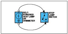 B. Connect one lead of a self-powered test lamp or ohmmeter to one end of the part of the circuit you wish to lest. If you are using an ohmmeter, hold the leads together and adjust the ohmmeter to read zero ohms.