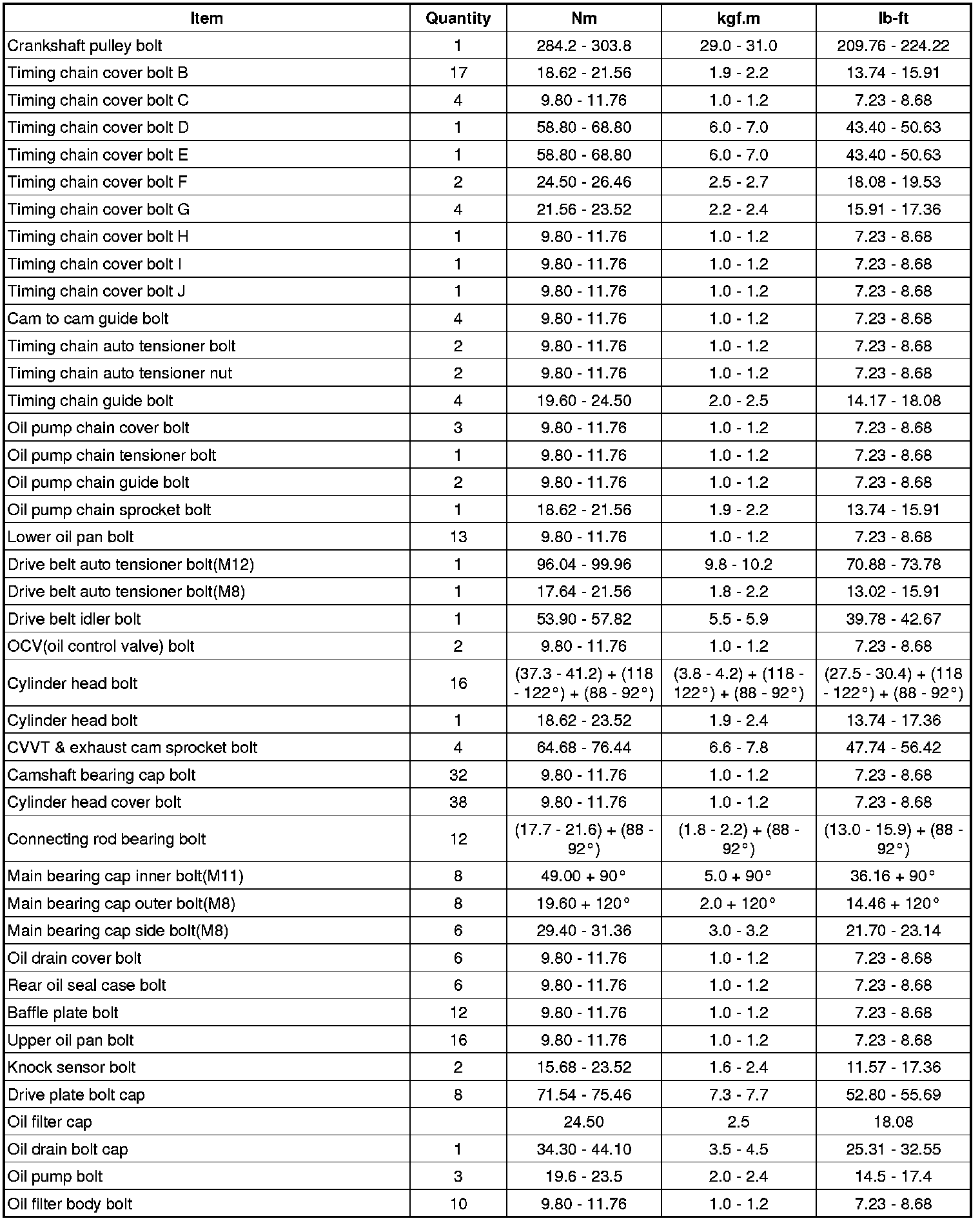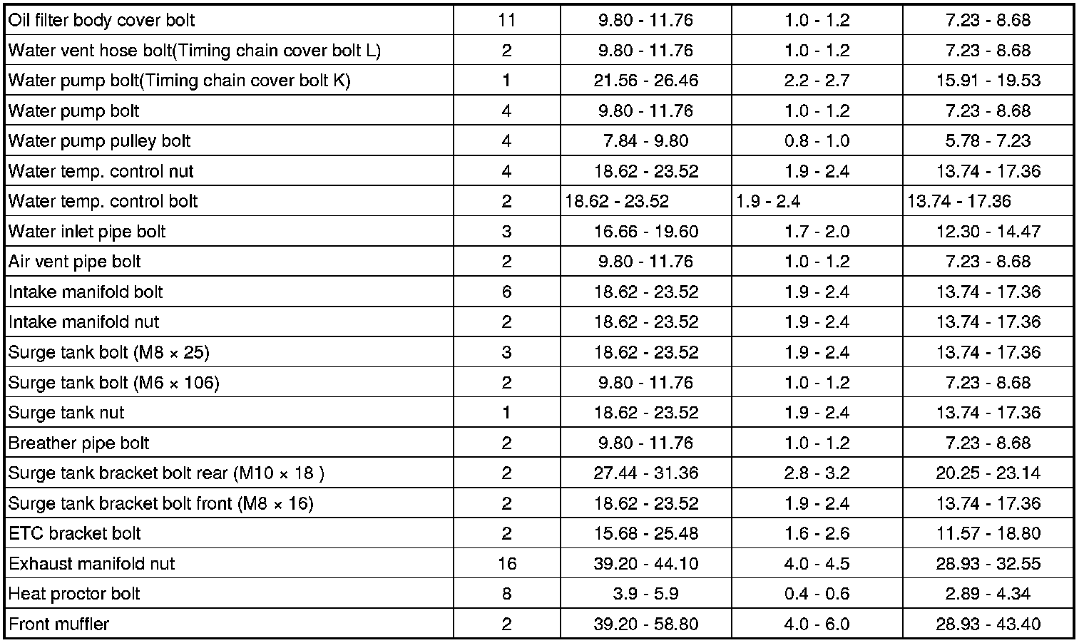 TIGHTENING TORQUES