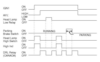 (2) If Head Lamp Low Relay is turned ON or Head Lamp High Switch is turned ON during DRL control operating, DRL control is cancelled.
