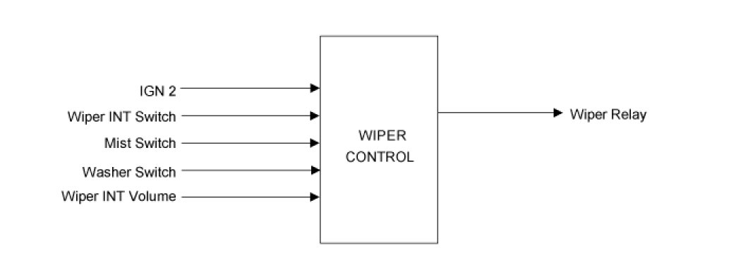 Variable INT Wiper is operated by INT volume when the input of INT WIPER switch is ON at the status of IGN2 ON.