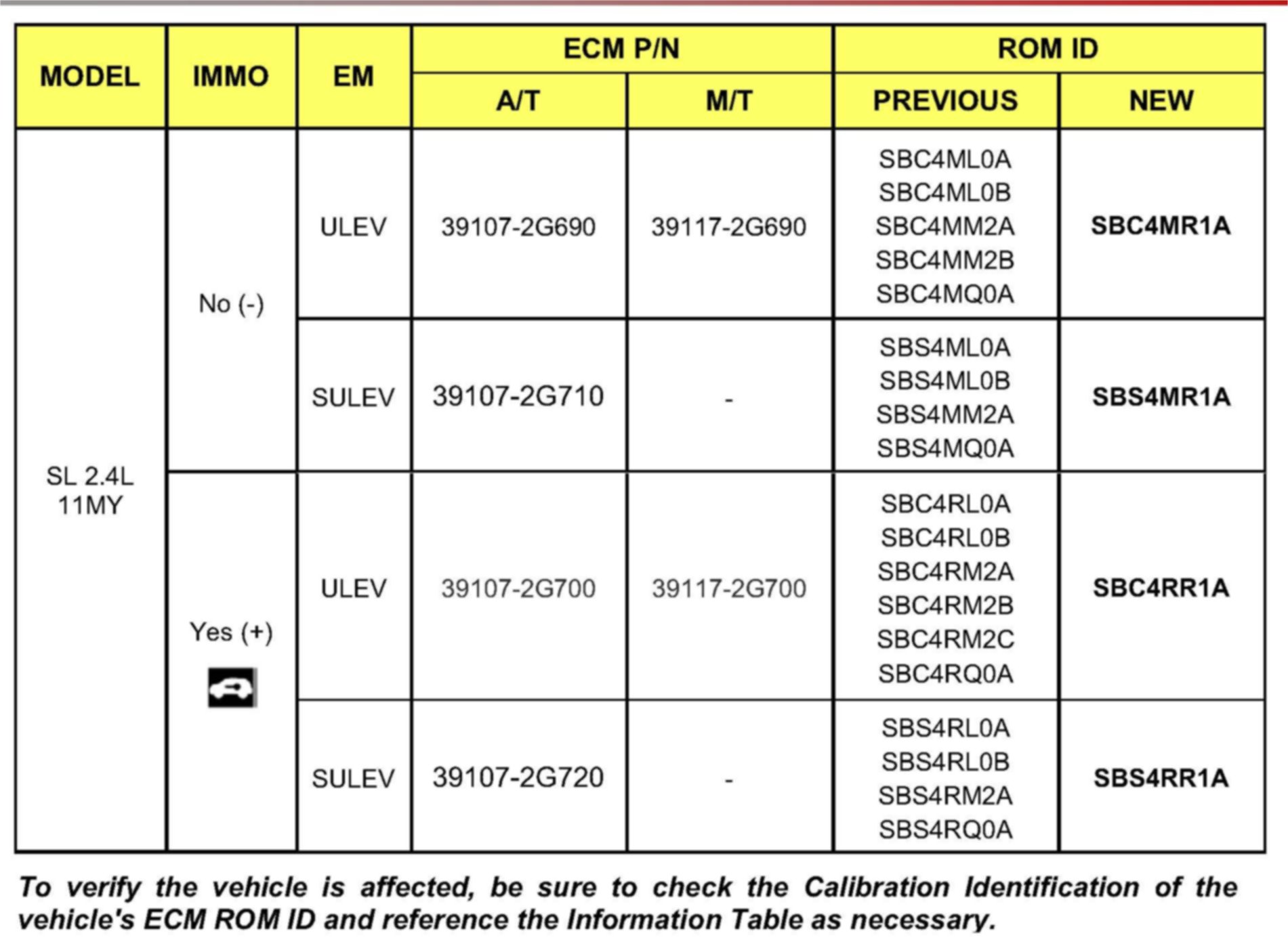 This bulletin provides information related to the VCM (Variable Charge Motion) actuator replacement and the ECM software upgrade of some 2011-2012MY Forte/Forte Koup (TD) 2.0/2.4L vehicles produced from August 19, 2010 to May 31, 2011 / June 1, 2011 to August 10, 2011, and some 2011MY Sportage (SL) 2.4L vehicles produced from June 10, 2010 to March 10, 2011 which may experience a MIL (Malfunction Indicator Lamp) illuminated with the ECM (Electronic Control Module) system-related DTC P200A. To correct this condition, the VCM actuator needs to be replaced and the ECM should be reprogrammed using the GDS download as described in this bulletin. For confirmation that the latest reflash has been done to a vehicle you are working on, verify ROM ID using the tables in this TSB.