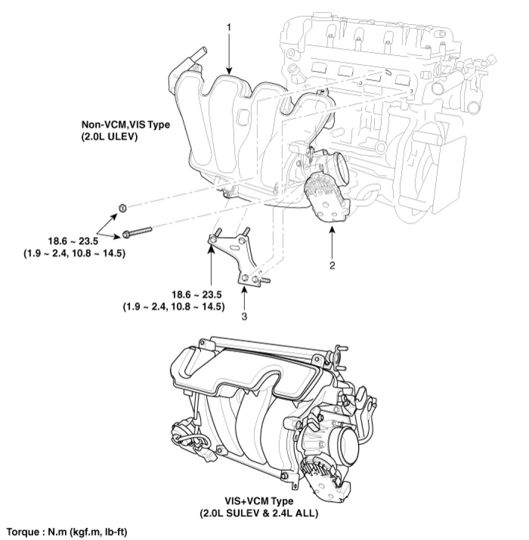 18.6 - 23.5 N.m (1.9 - 2.4 kgf.m, 13.7 - 17.4 lb-ft)