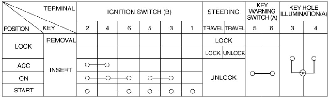 4. If it is necessary to remove the key lock cylinder(A), Remove the key lock cylinder after pushing lock pin(B) with key ACC.