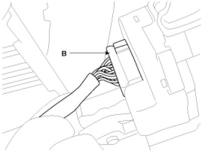 1. Disconnect the ignition switch connector(B) and key warning switch connector(A) from under the steering column.