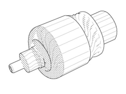 8. Check with an ohmmeter that no continuity exists between the commutator (A) and armature coil core (B), and between the commutator and armature shaft (C). If continuity exists, replace the armature.