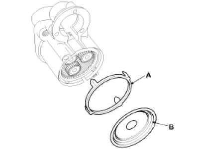 1. Check that there is no continuity between the (+) brush holder (A) and (-) plate (B). If there is continuity, replace the brush holder assembly.
