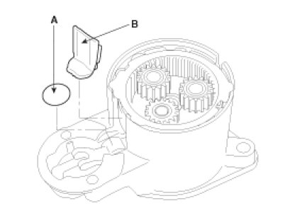 8. Disconnect the planet shaft assembly (A) and lever (B).