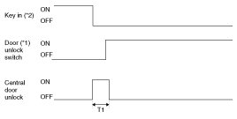 4. ALL DOOR UNLOCK output to the UNLOCK -> LOCK Assist Unlock State, Driver Unlock State or when ALL DOOR UNLOCK output is performed during T2.