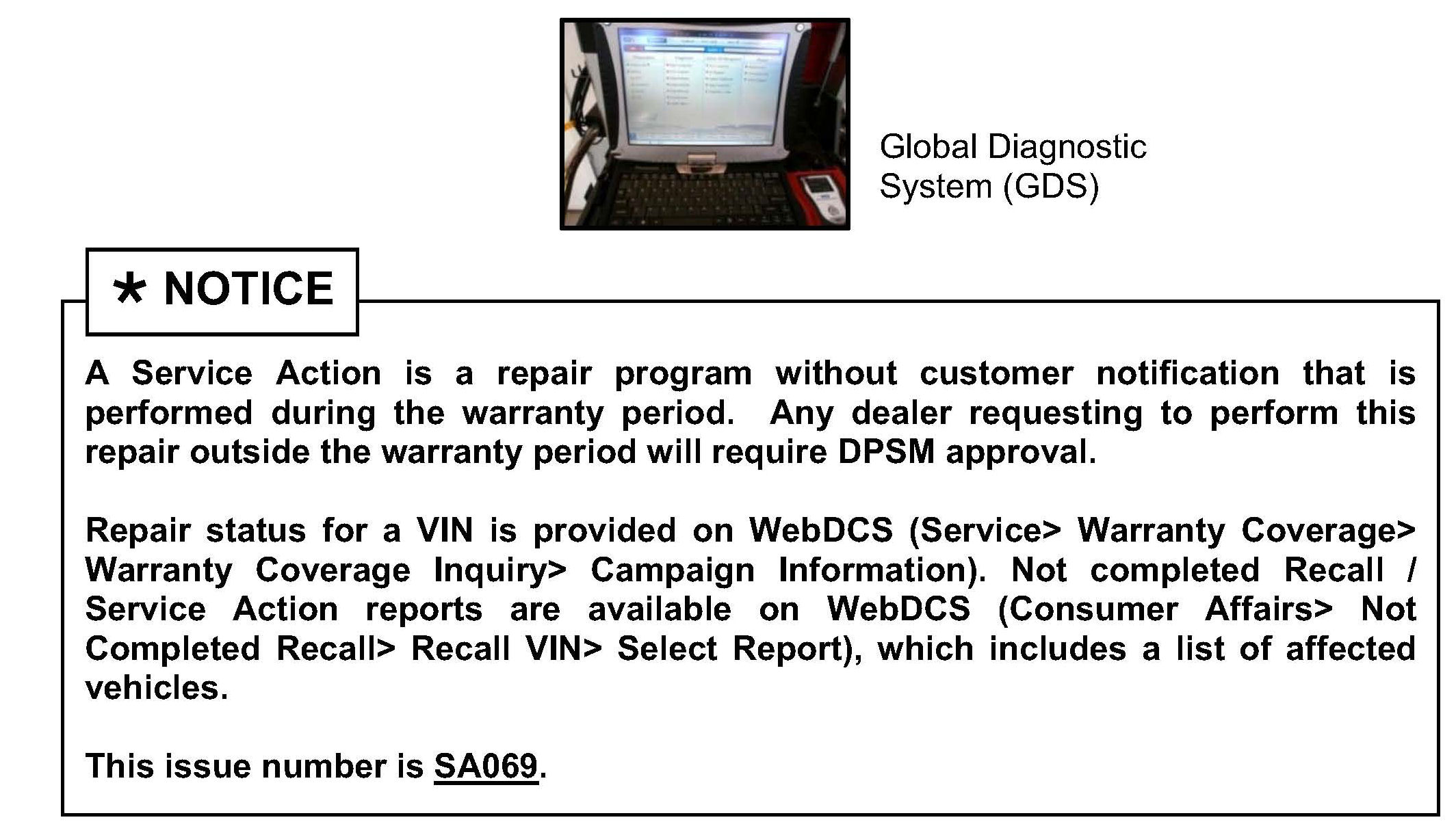 Service Action Warranty Claim Information: