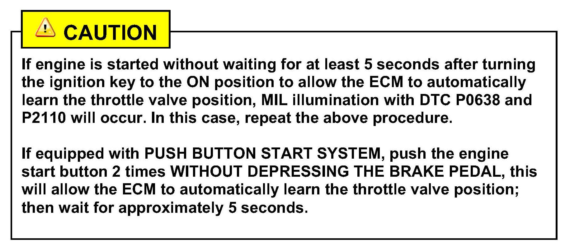 13. Wait for 5 seconds after turning ignition ON (ETC adaptive value relearn).