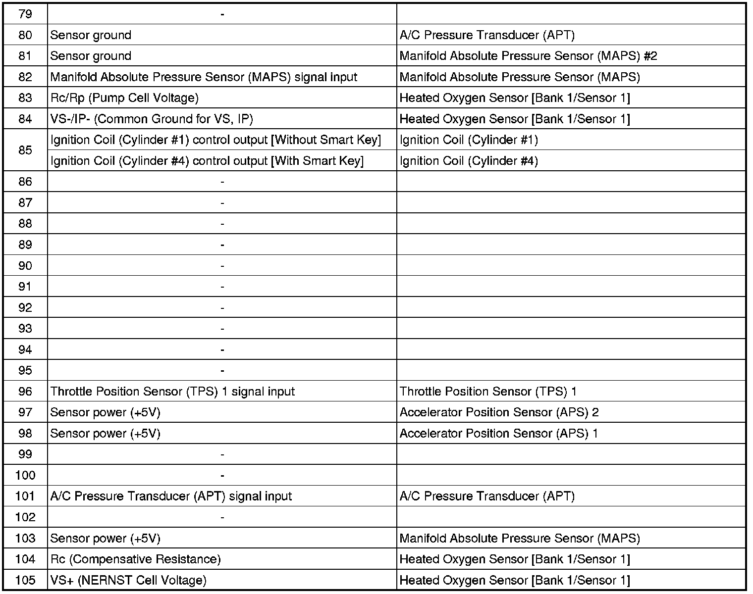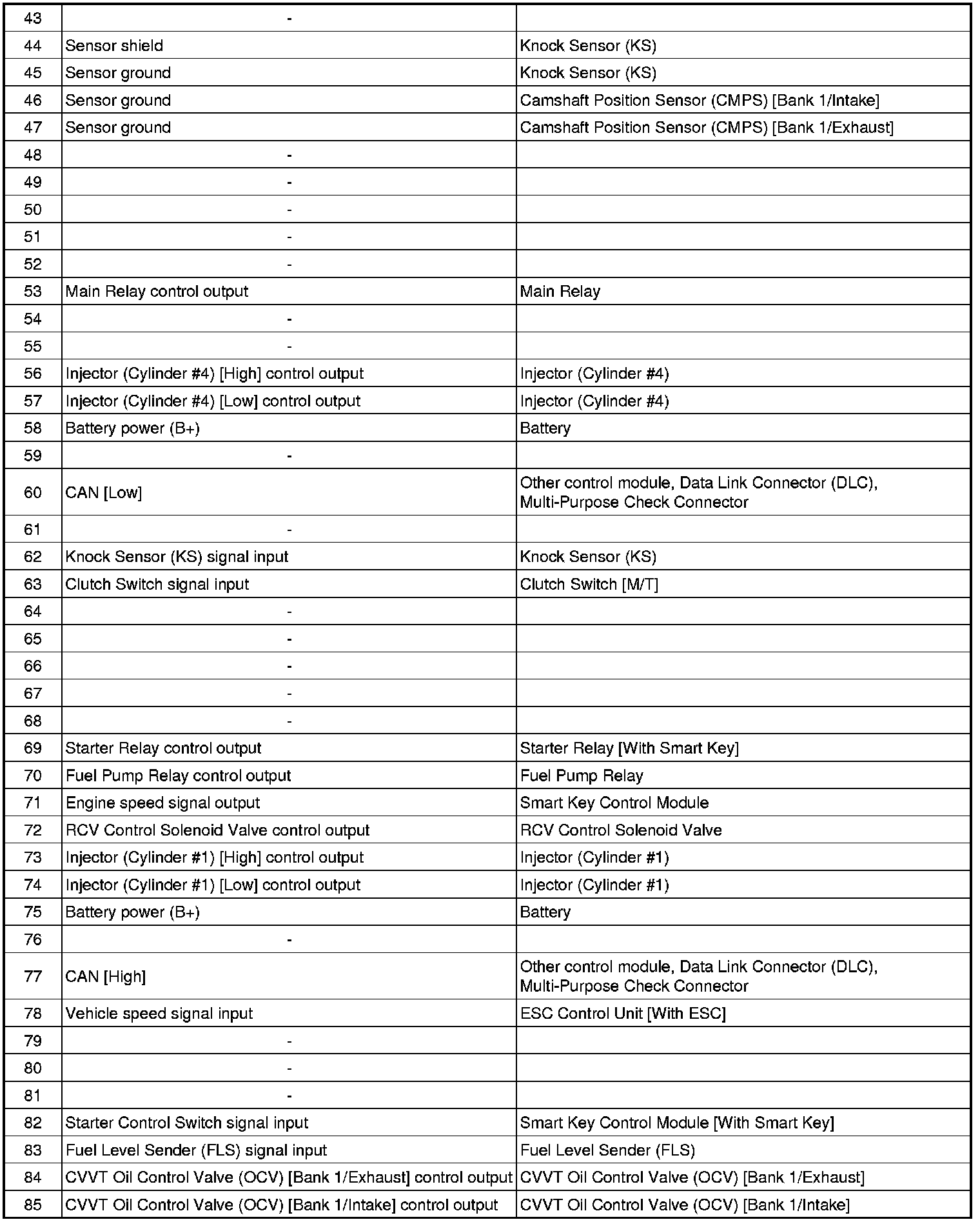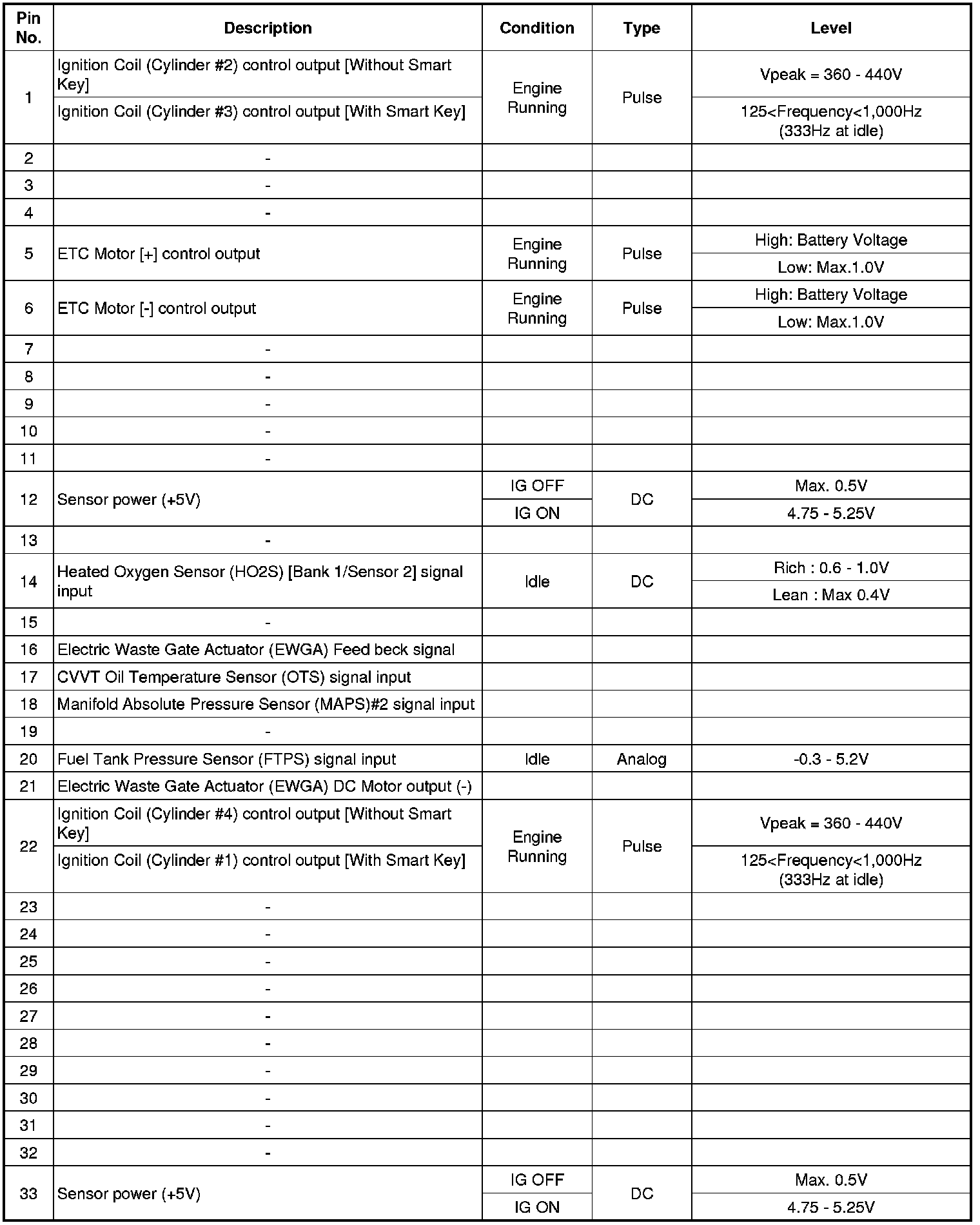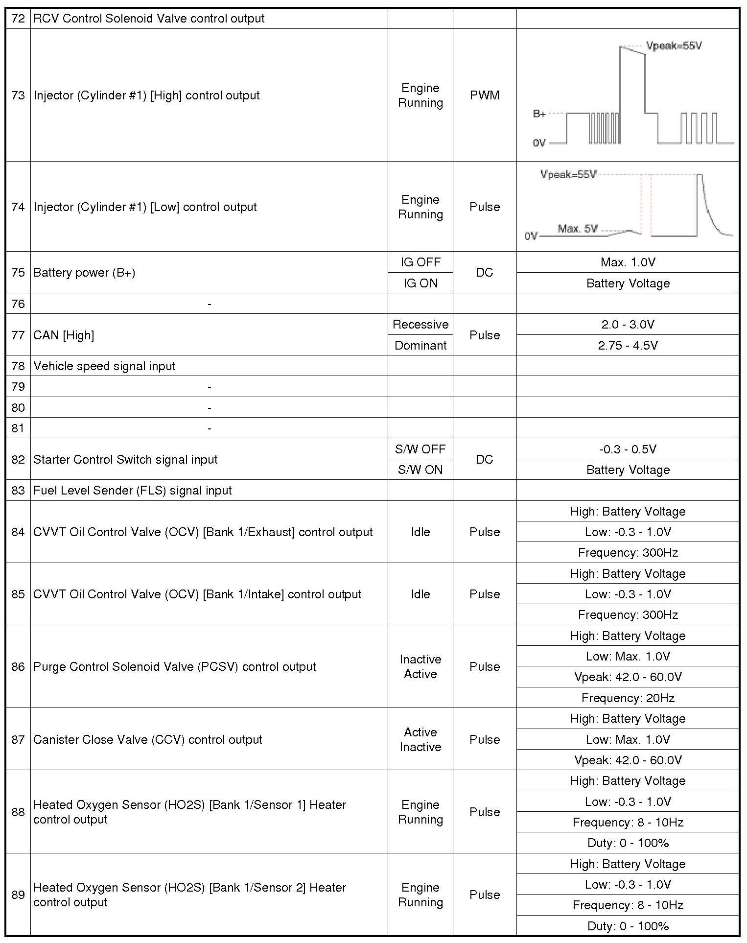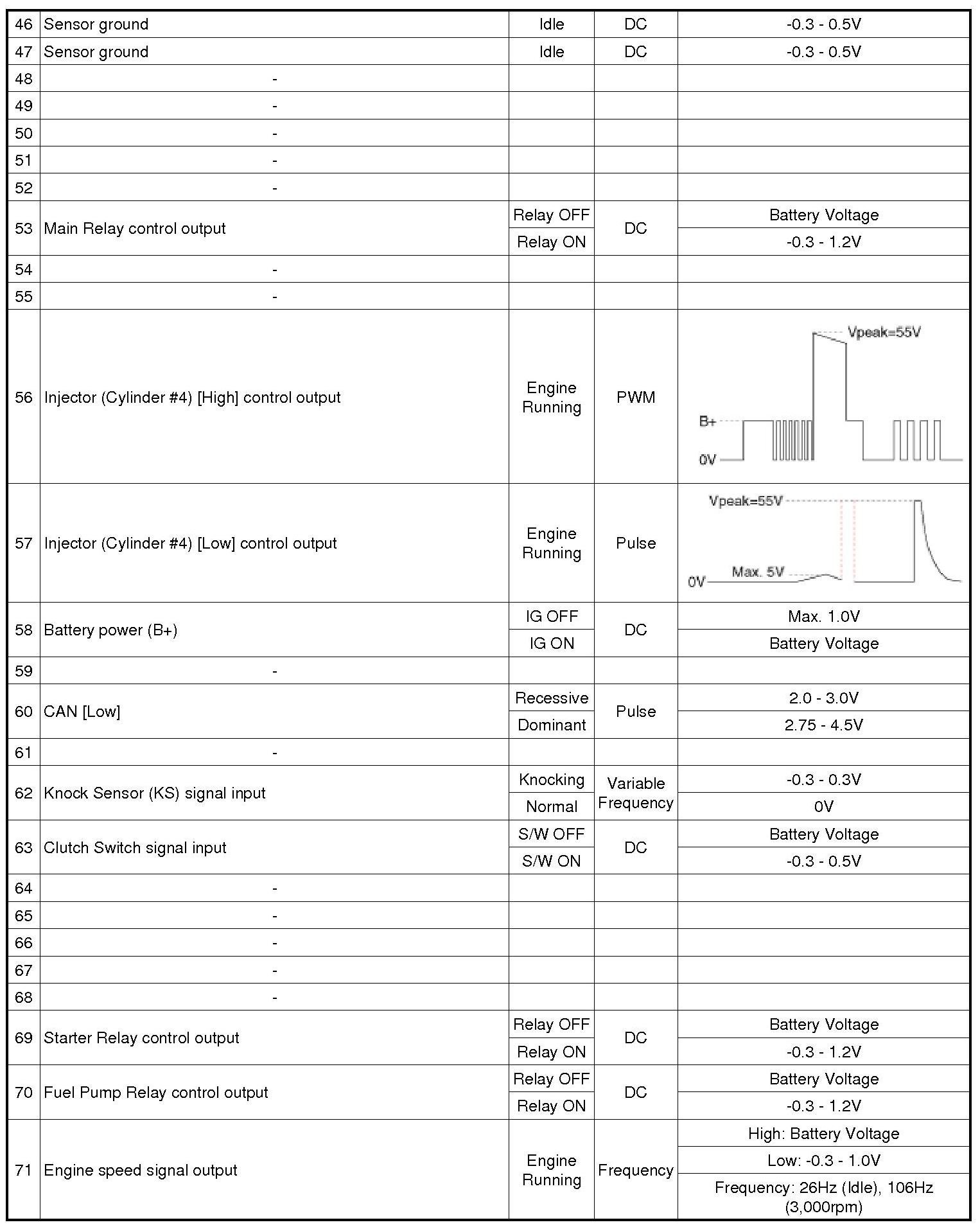 ECM Terminal And Input/Output signal