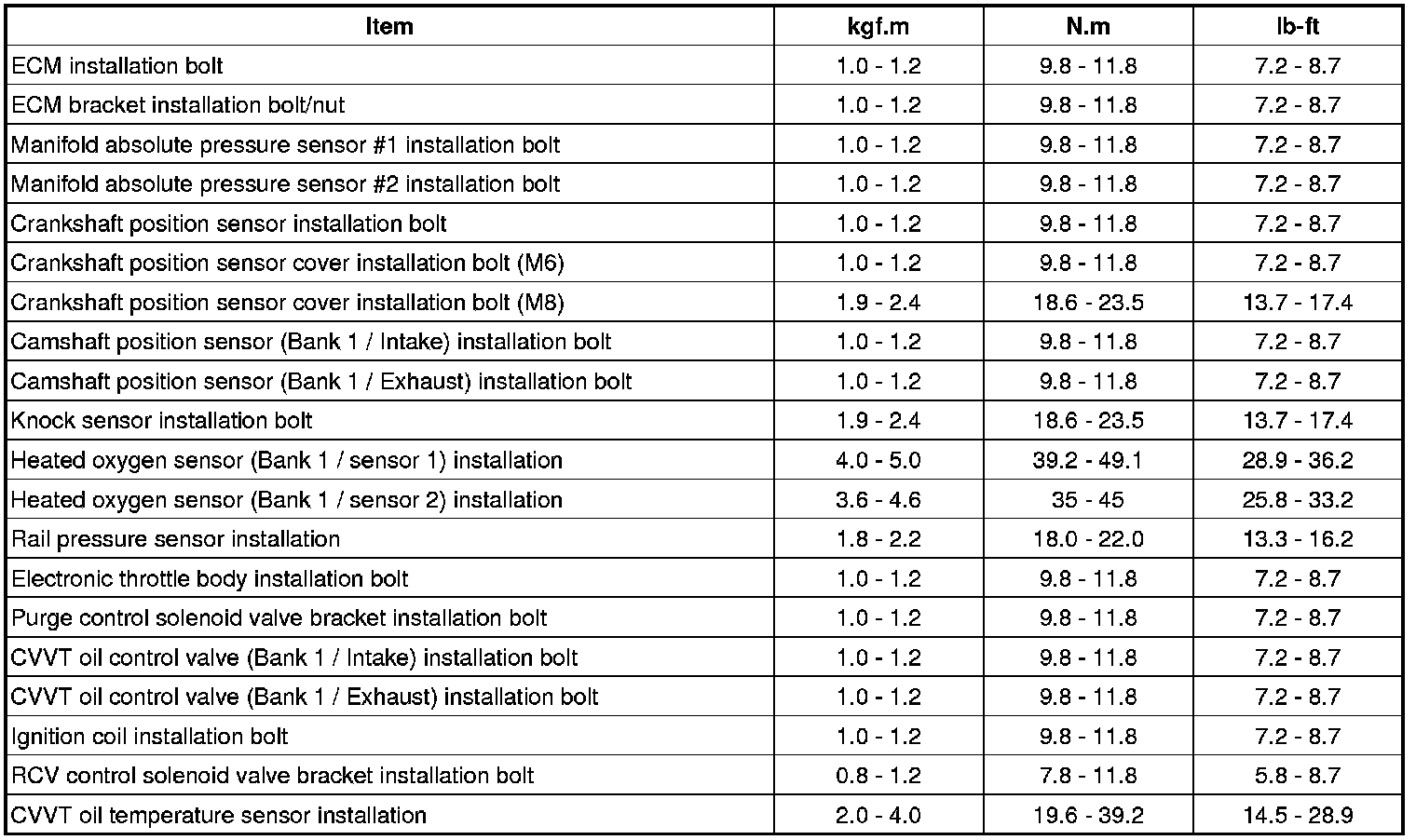 Tightening Torques