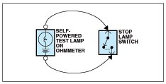 B. Connect one lead of a self-powered test lamp or ohmmeter to one end of the part of the circuit you wish to lest. If you are using an ohmmeter, hold the leads together and adjust the ohmmeter to read zero ohms.
