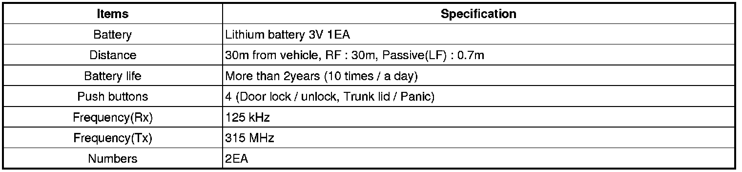 Keyless Starting System: Specifications
