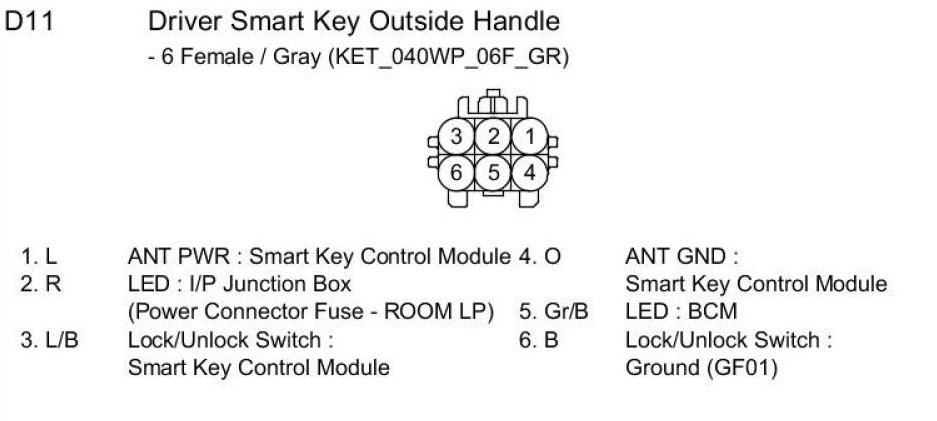 D11 Driver Smart Key Outside Handle: