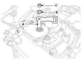 6. Remove the manual control lever (A) and the washer (B) after removing a nut (C).
