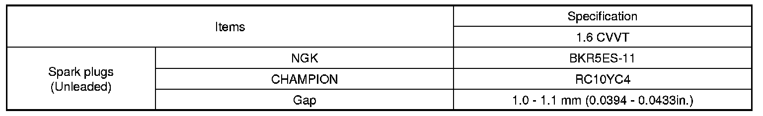 Spark Plug: Specifications