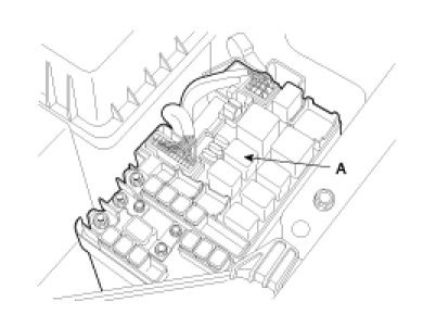 To prevent fuel being injected from injectors while the engine is being cranked, remove the fuel pump relay(A) from the fuse box.