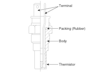 Engine Coolant Temperature Sensor (ECTS) is located in the engine coolant passage of the cylinder head for detecting the engine coolant temperature. The ECTS uses a thermistor whose resistance changes with the temperature. The electrical resistance of the ECTS decreases as the temperature increases, and increases as the temperature decreases. The reference 5 V in the PCM is supplied to the ECTS via a resistor in the PCM.That is, the resistor in the PCM and the thermistor in the ECTS are connected in series. When the resistance value of the thermistor in the ECTS changes according to the engine coolant temperature, the output voltage also changes. During cold engine operation the PCM increases the fuel injection duration and controls the ignition timing using the information of engine coolant temperature to avoid engine stalling and improve drivability.