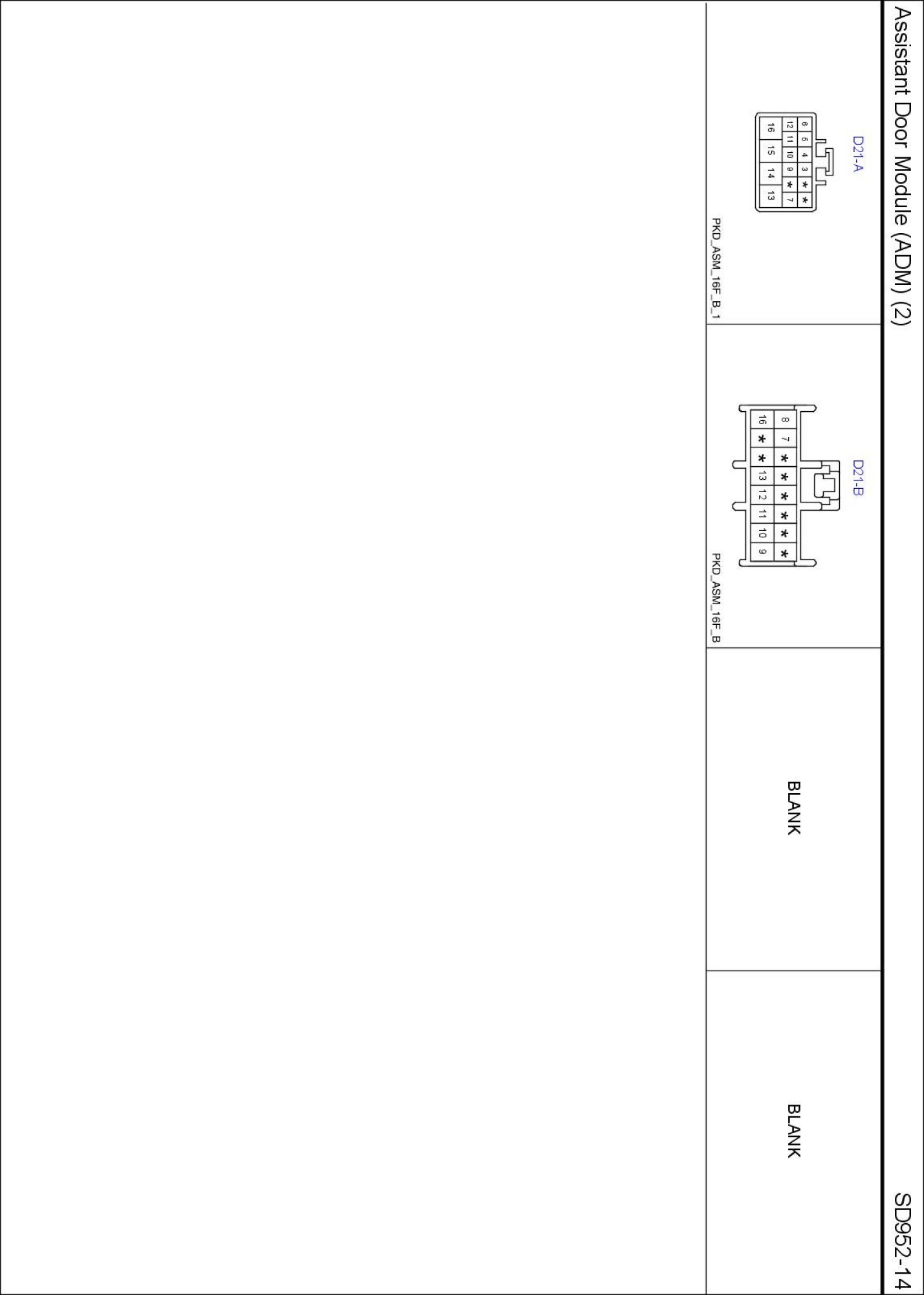 Driver Door Module (ADM) (2) Connector Pin Outs: