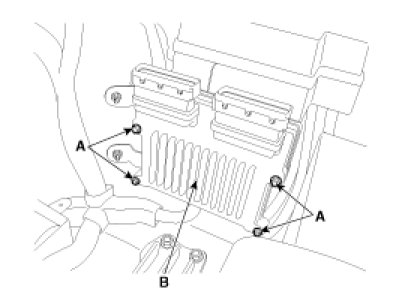 4. After removing the installation bolts (A), remove the ECM (B) from the bracket.