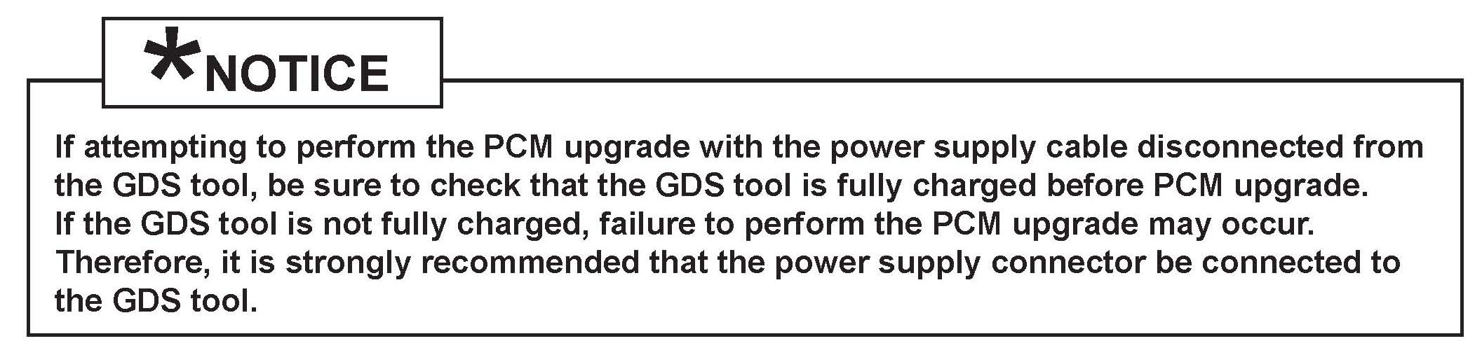7. When the GDS tool reports that the PCM upgrade has been successfully completed click OK turn OFF the ignition key and wait at least 10 seconds before attempting to start the engine.