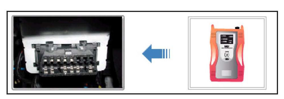 4. Connect the Main 16-pin DLC cable (GHDM - 241000) to the OBD-II connector, located under the drivers side of the instrument panel.