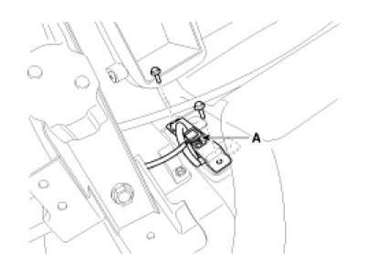 4. After disconnecting the smart key unit connector, loosen the smart key unit mounting bolt and nut, and remove the smart key unit (A).