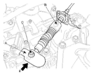 - Push the shift cable (B) lightly to "F" direction (shown in Fig 1) to eliminate the free play.