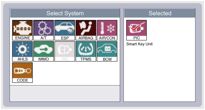 2. Select the vehicle model and then SMART KEY system.
