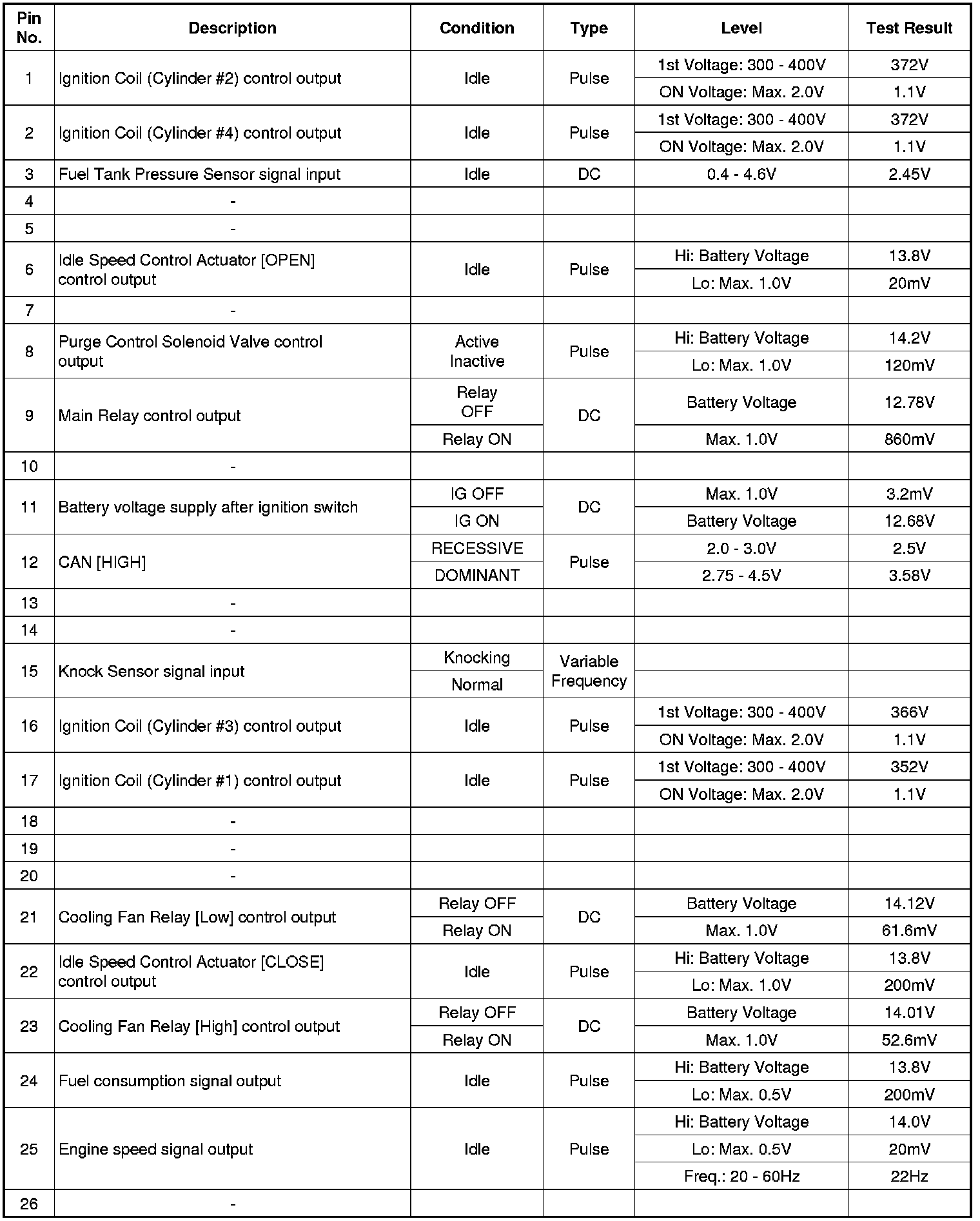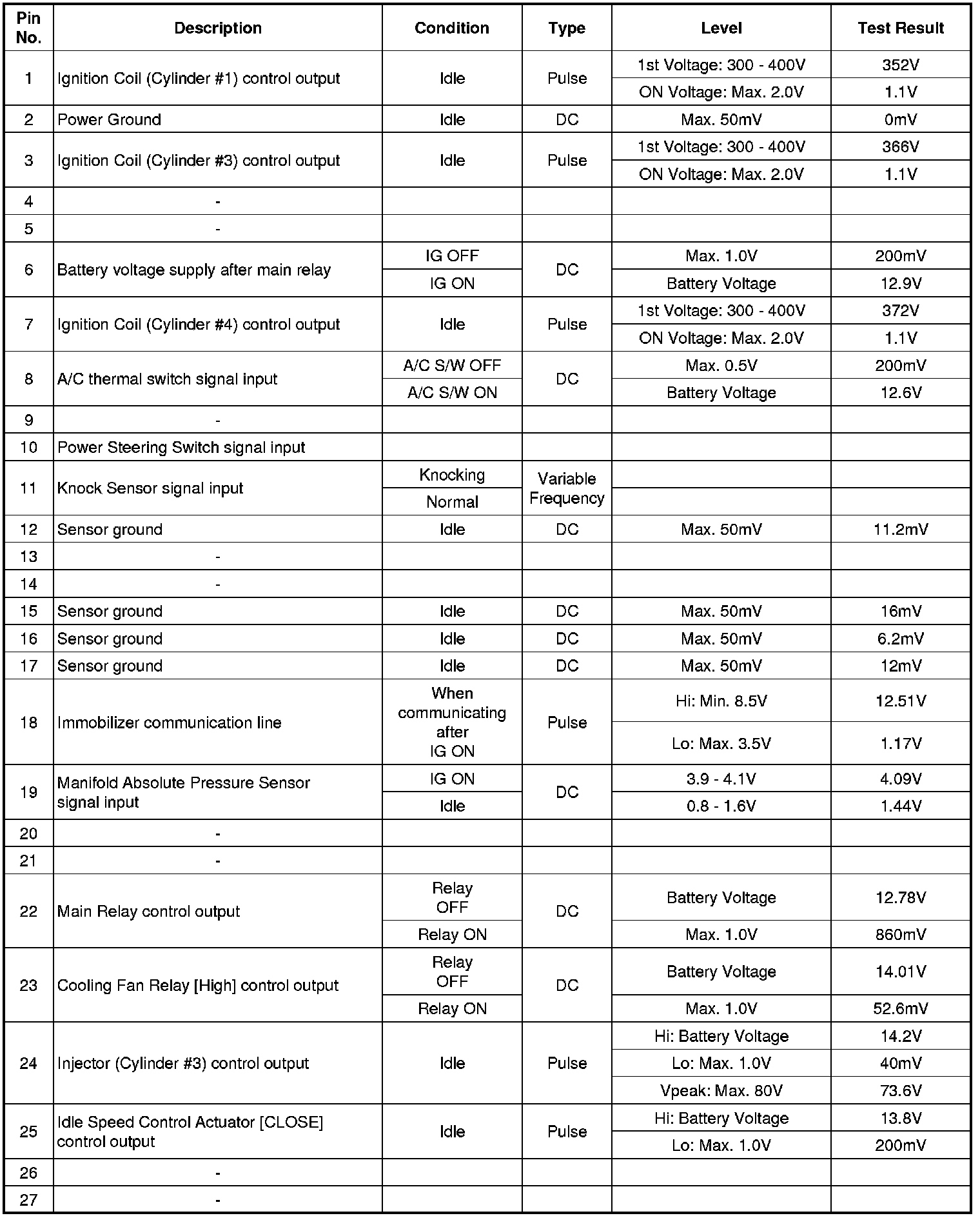 ECM Terminal And Input/Output signal