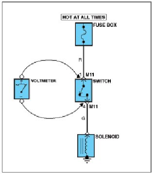 C. If the test lamp glows, there is voltage present. If you are using a voltmeter, note the voltage reading. A loss of more than 1 volt from specification indicates a problem.