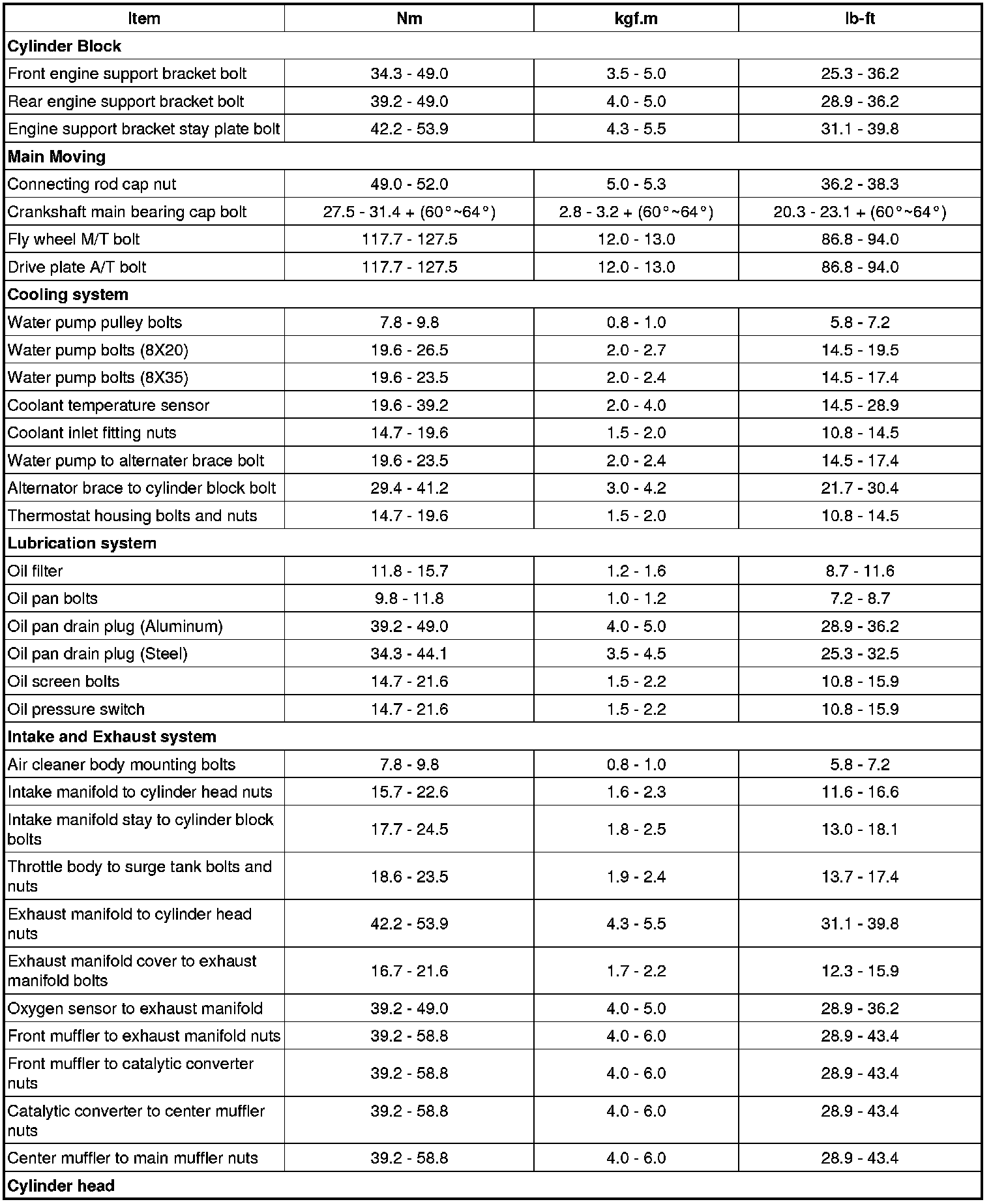 Tightening Torques