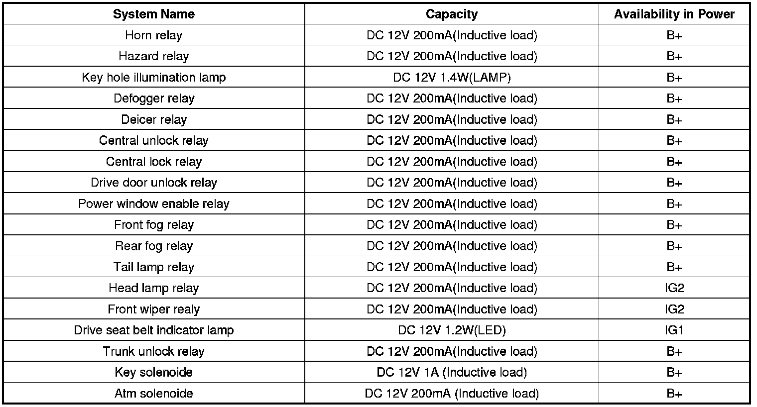 Electrical Specifications