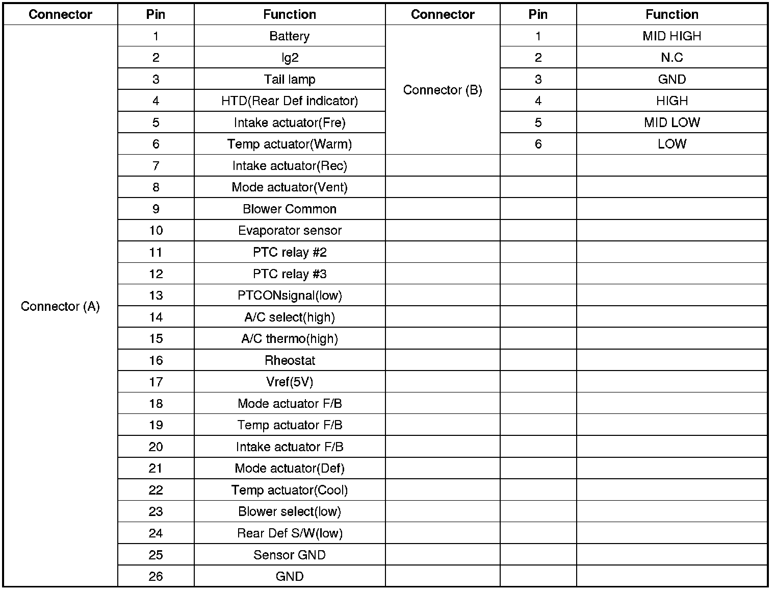 Connector Pin Function