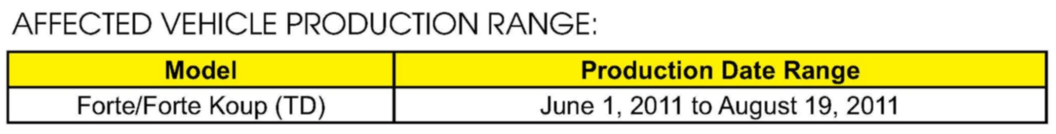 AFFECTED VEHICLE PRODUCTION RANGE