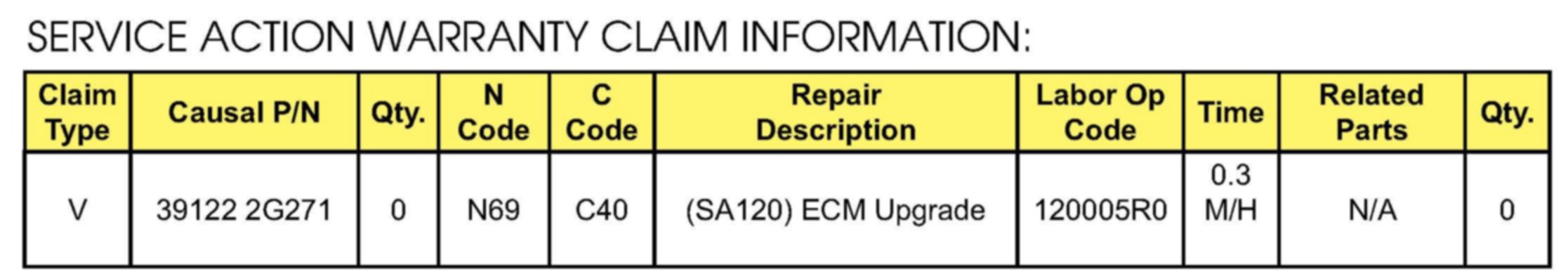 VIN inquiry data for this repair is provided for tracking purposes only. Kia retailers should reference SA120 when accessing the WebDCS system.